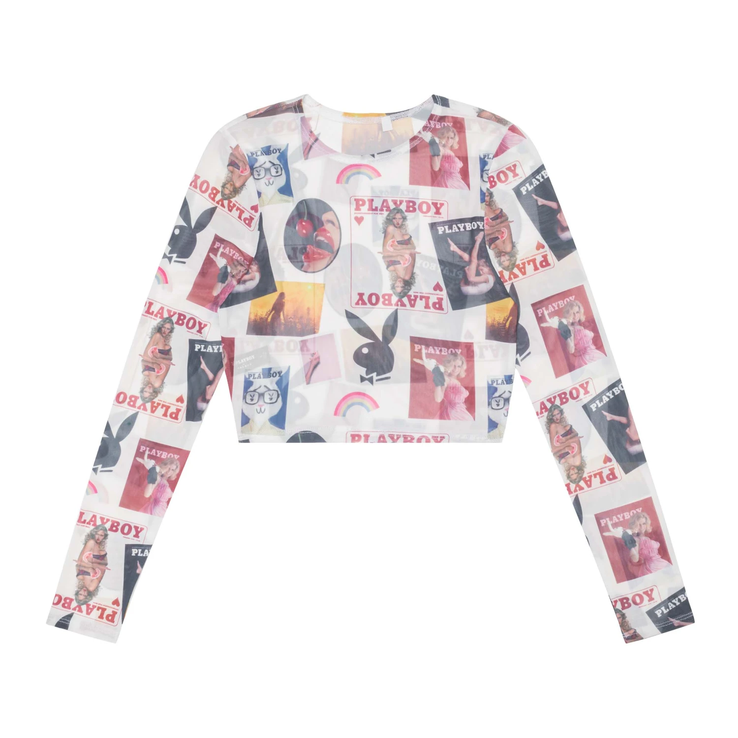 Step into a world of dazzling allure with the V-Day Collage Mesh Long Sleeve Top from Playboy. This isn’t just clothing; it’s a statement—a captivating blend of sultry design and striking aesthetics.