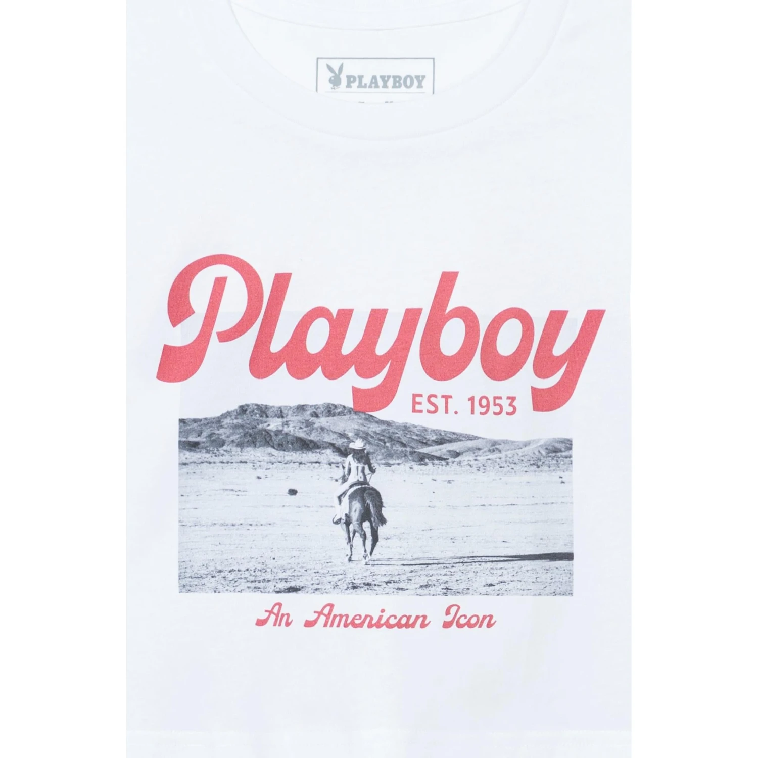 Delve into the realm of vintage allure reimagined with the Desperado American Icon Women’s Cropped Long Sleeve by Playboy. This piece isn’t just a garment; it’s a journey through time, capturing the raw beauty of the Joshua Tree desert and the captivating presence of Olivia Brower.