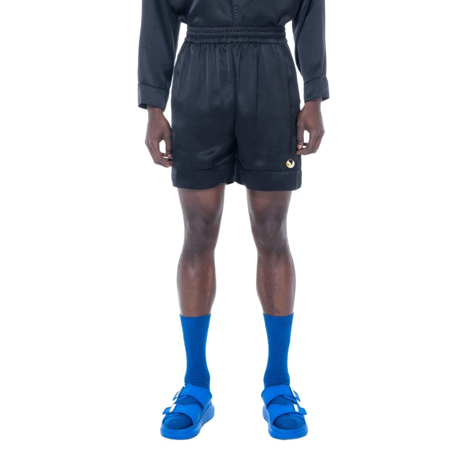 These silk shorts are comfortable enough to go day to night and back again. Slip on casual shorts that instantly elevate your style and vibe. Featuring BIGBUNNY tri-color rabbit-head embroidered patch.