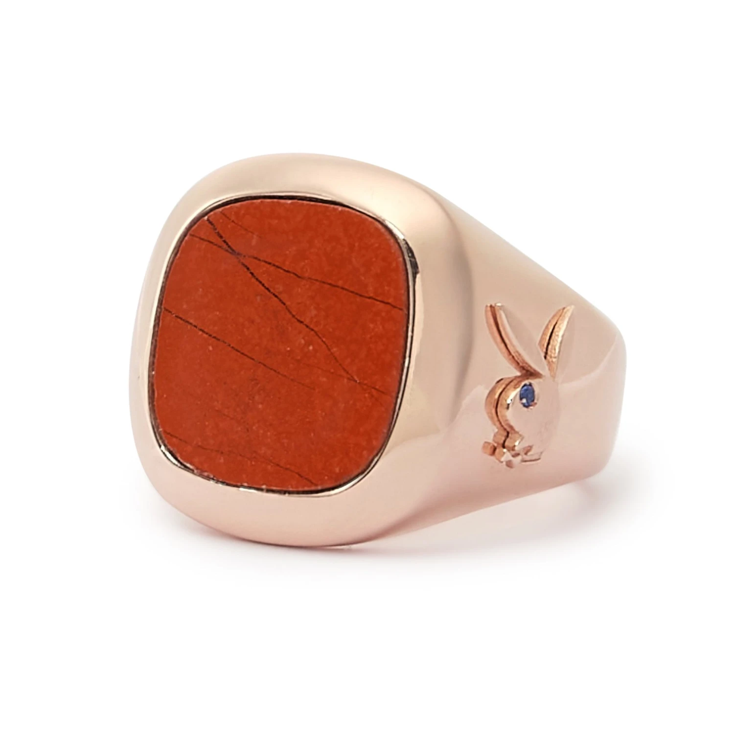 - Rose Gold Playboy Ring (red): 100% red jasper and 18k rose gold plating.