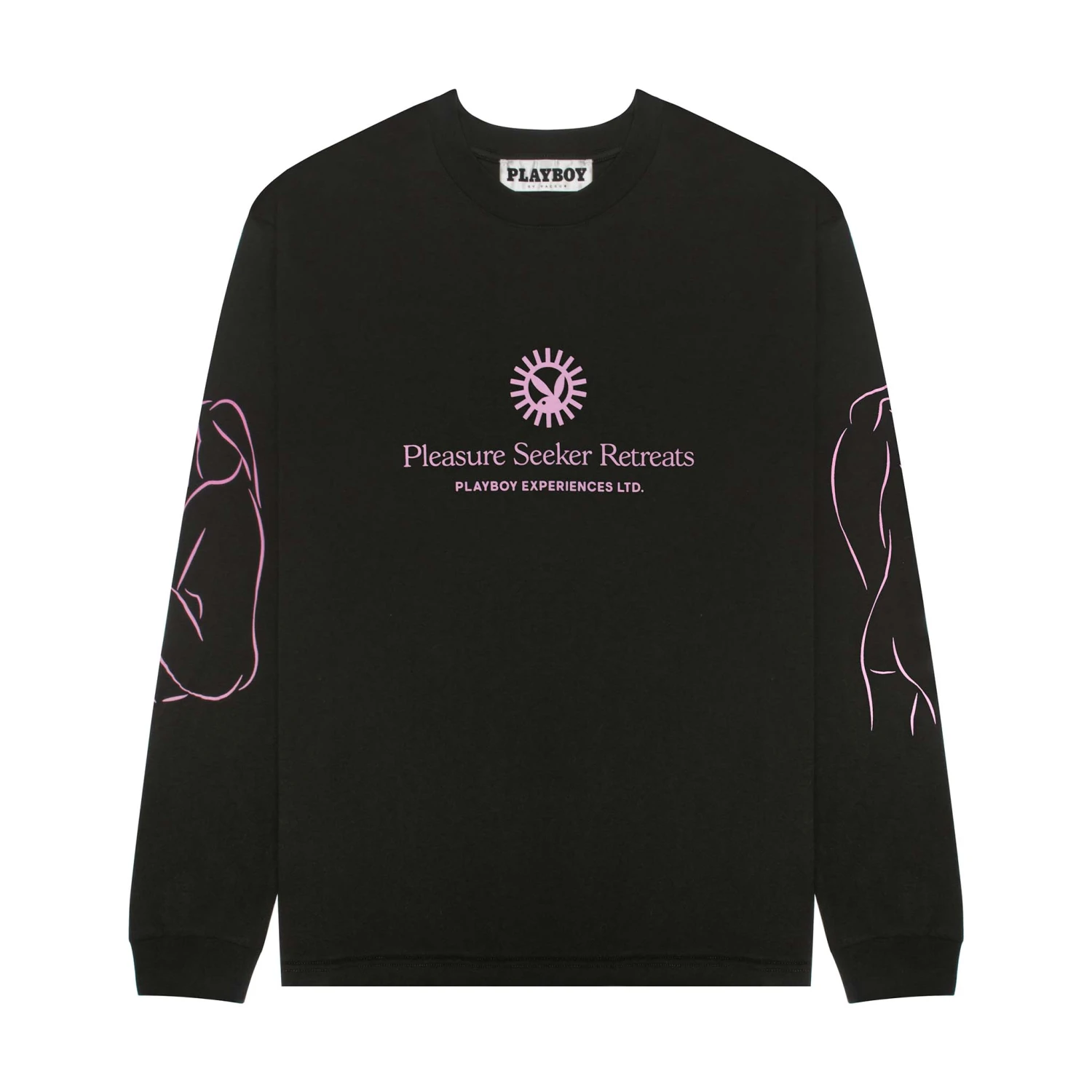 - Long Sleeves: Embrace a canvas of creativity, featuring the unique “Pleasure Seeker Retreat” graphics.