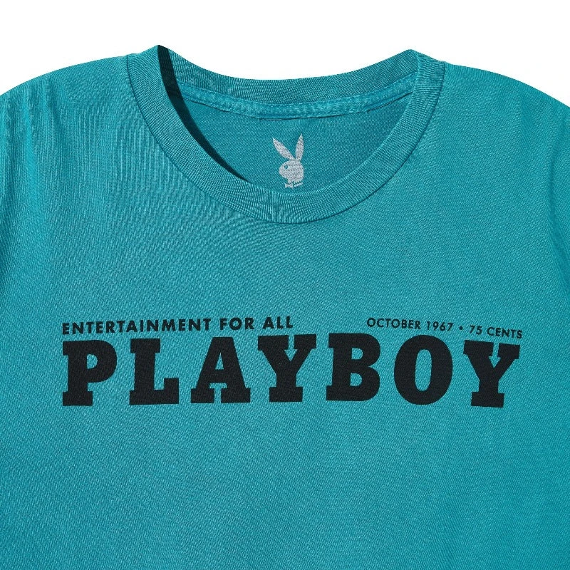 Welcome to a style flashback with our Playboy October 1967 Washed T-Shirt. A tribute to one of Playboy’s most iconic magazine covers, this shirt features the beguiling Femlin character by LeRoy Neiman. Clothed in nothing but her signature black stockings, heels, and gloves, Femlin is not just a character; she’s a Playboy legend.