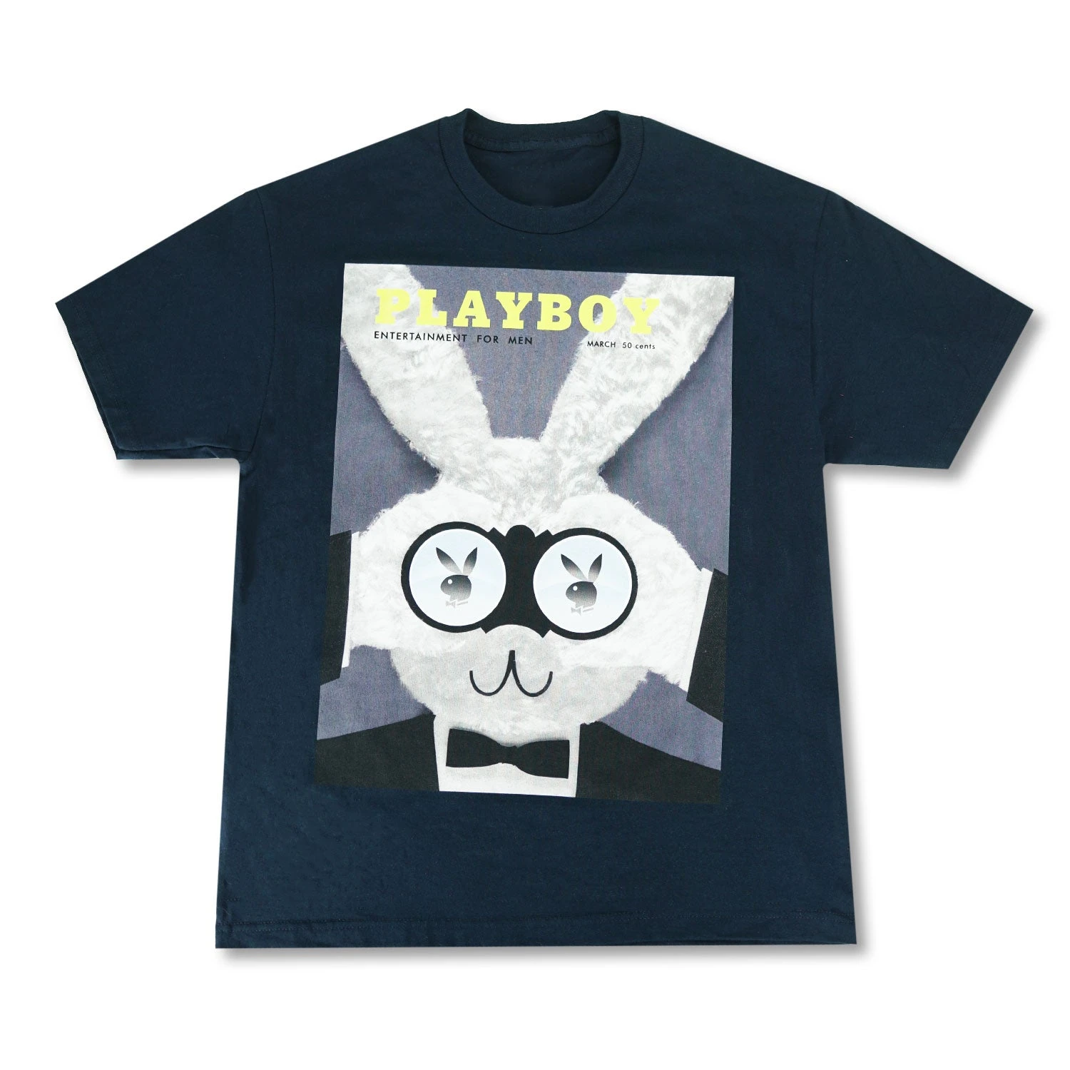 Embrace a piece that sets you apart in the world of style. The Playboy March Bunny Cover Navy Tee is more than a garment—it’s a statement of individuality and a testament to those who lead the way in fashion.