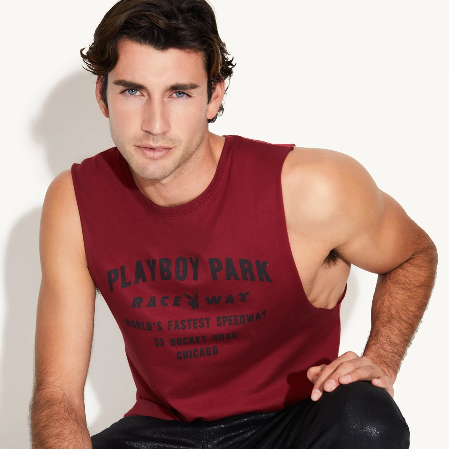 Feel the freedom, embrace the comfort, and live the Playboy lifestyle with the Raceway Muscle Tank. Your wardrobe will thank you.