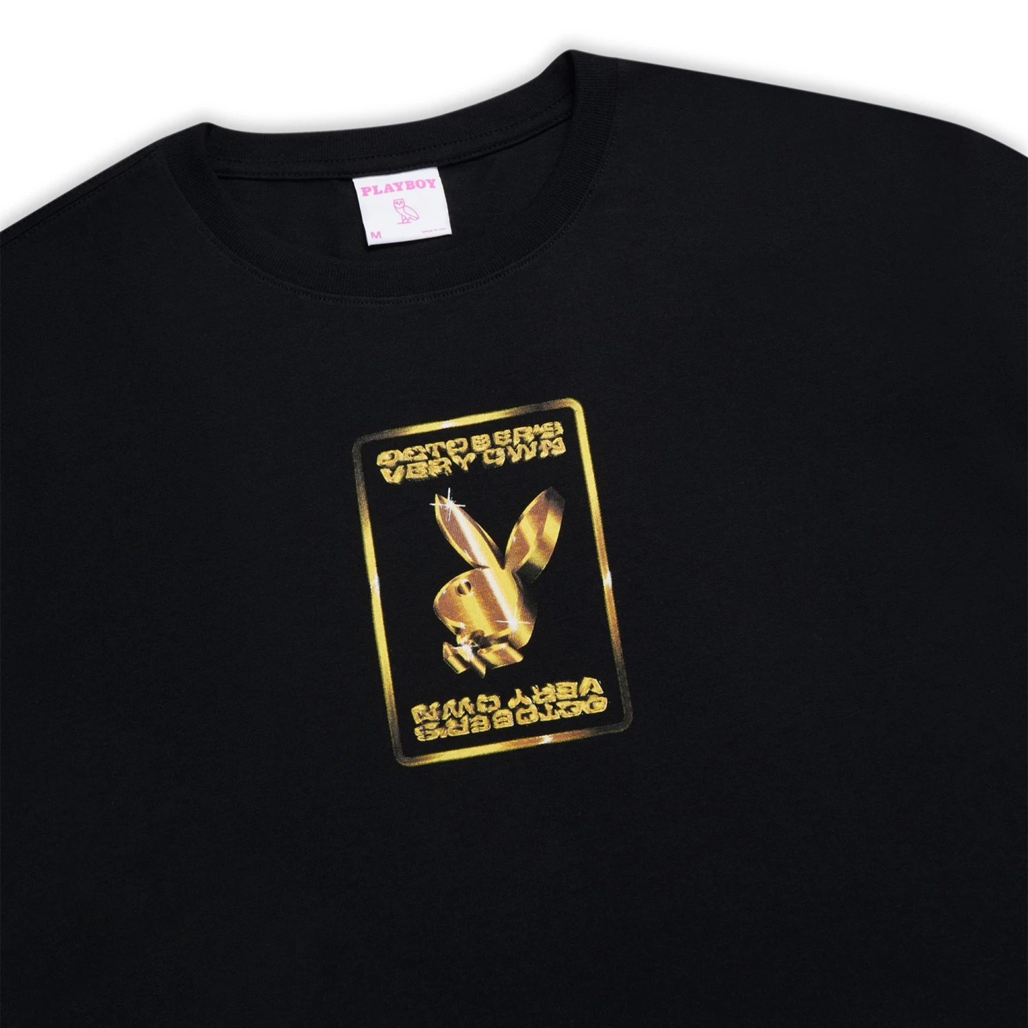 - Design: The shirt features a standout graphic print on the front, showcasing the unity of the OVO owl and the Playboy logo. This striking design is not just an emblem of the collaboration but also a statement piece that’s bound to catch eyes and start conversations.