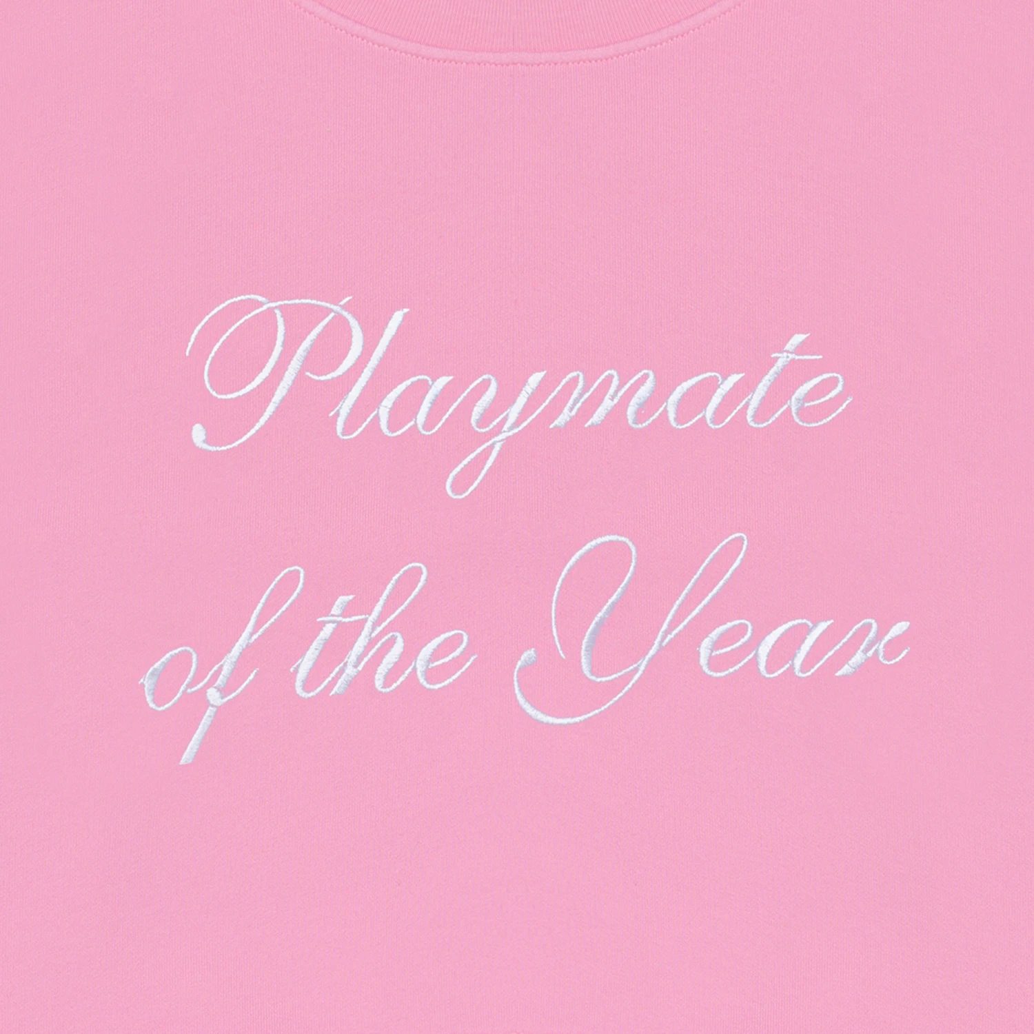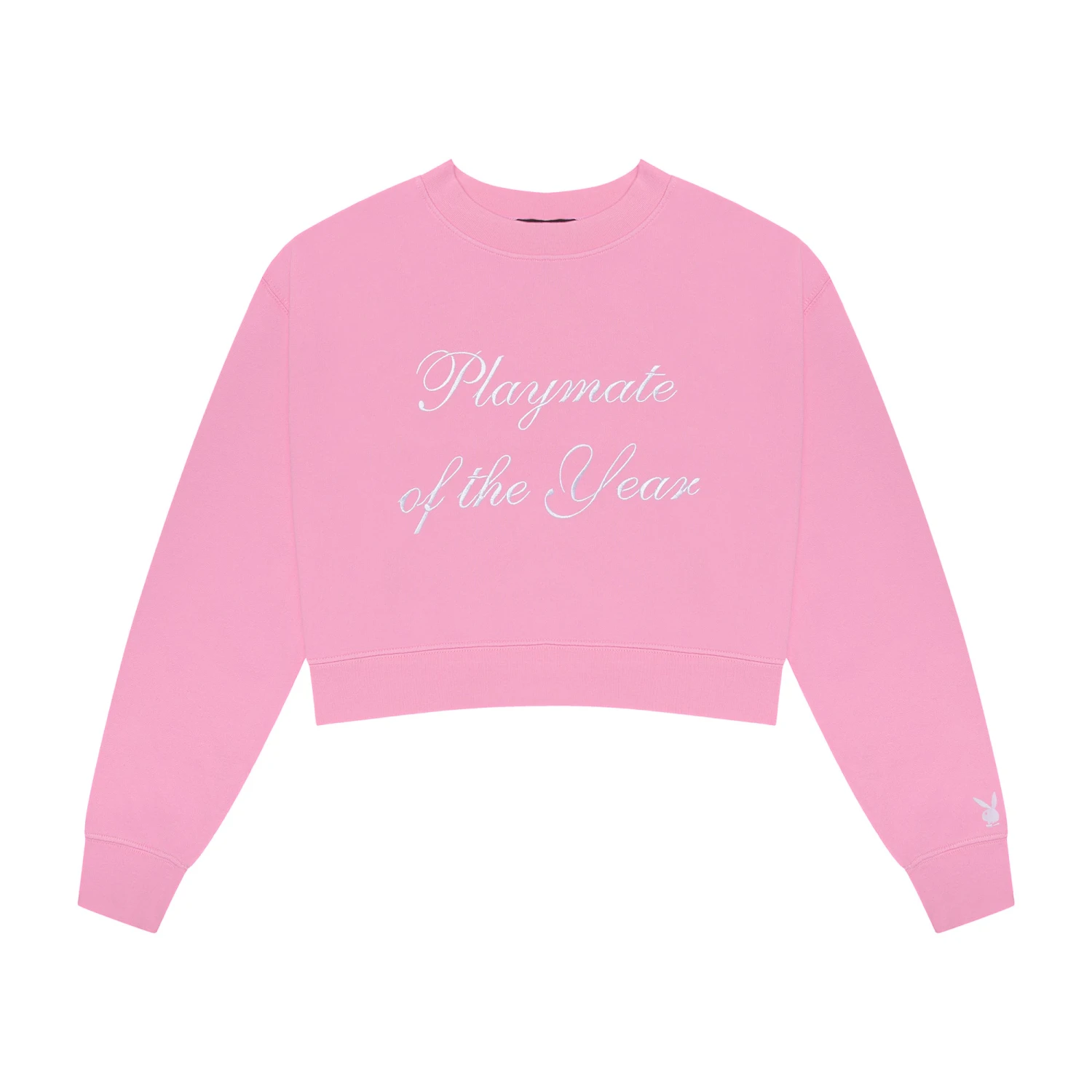 Dive into the epitome of chic comfort with the Playboy Playmate of the Year Cropped Crewneck in Pink and White Print. This crewneck transcends traditional attire, embodying an elegance that pays homage to Playboy’s storied tradition.