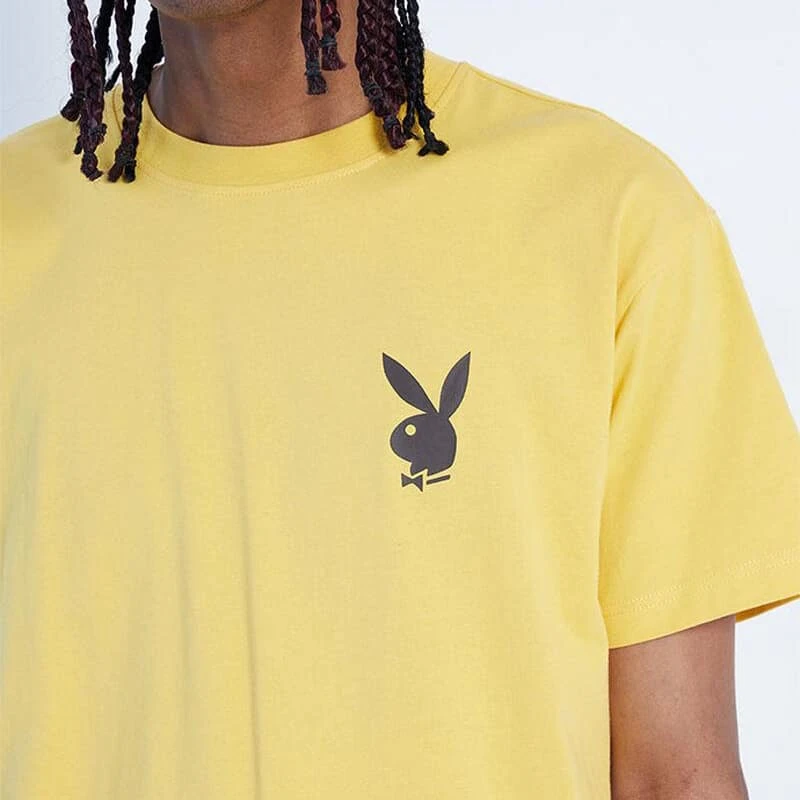 - Iconic Playboy Graphics: Adorned with custom graphics at the left chest and back, this t-shirt showcases the legendary Playboy style.