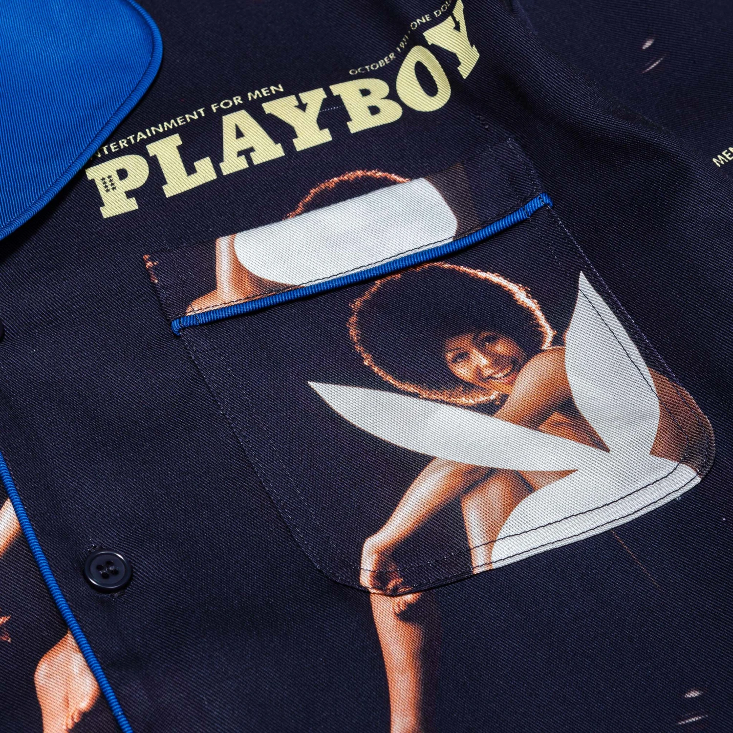 Immerse yourself in the blend of history and audacious style with the Soulland October 1971 Playboy Long Sleeve Camp Shirt. This isn’t just apparel; it’s a tribute to Darine Stern, the first African-American Playboy cover model from October 1971.