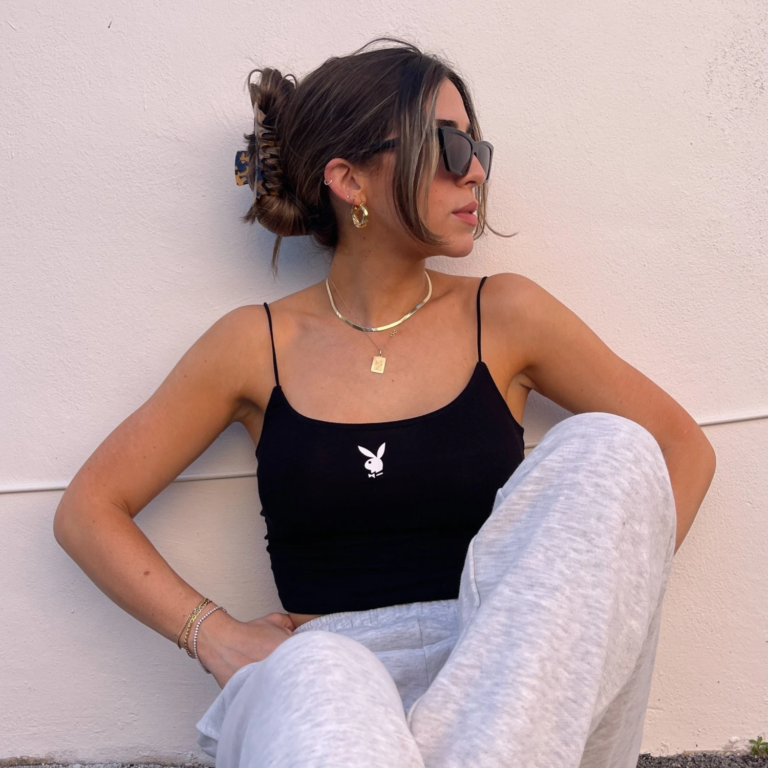 Transform every look into a statement with the Women’s Classic Cami Top in White by Playboy. This piece transcends the ordinary tank, becoming an essential statement in your wardrobe that carries the allure of every setting you grace. It’s not just an item of clothing; it’s a gateway to expressing your unique style, marked by the iconic Playboy branding. Embrace the extraordinary and let your wardrobe reflect the unparalleled chic comfort only Playboy can offer.