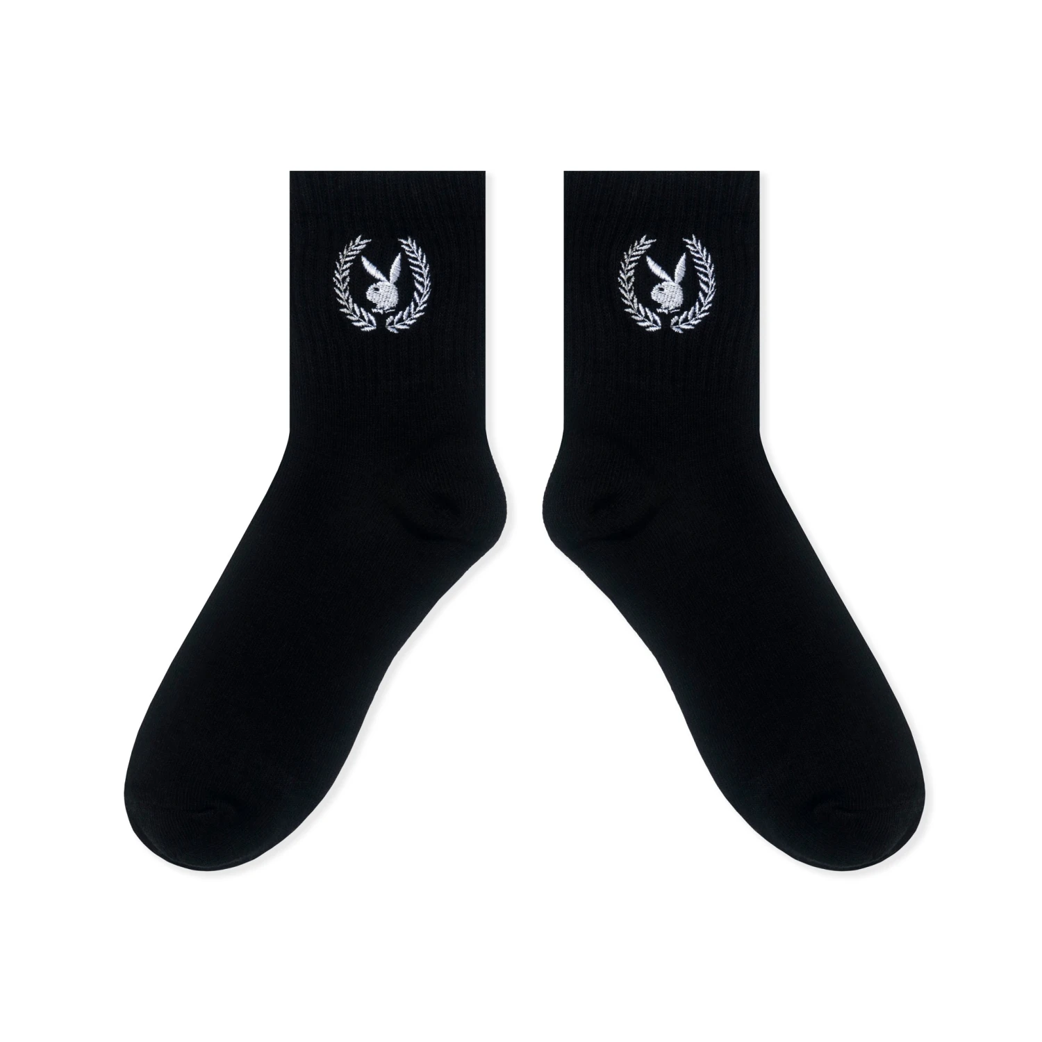 Flaunt your rebellious spirit with our Women’s Laurel Leaf Socks. Elevate your daily style game with these short socks, featuring a soft ribbed fabric that ensures the utmost comfort. The laurel leaf Playboy logo graphic at the ankle adds a dash of iconic branding. Available in a solid color design and crafted for comfort, these socks are a daily essential that you won’t want to miss. Make every step a statement of your individuality with these exclusive socks.