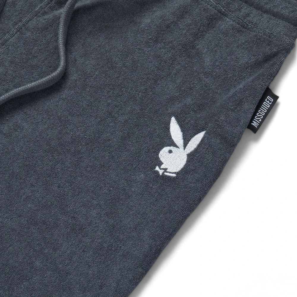 This set isn’t just clothing; it’s a statement of relaxed elegance. Every detail, from the Playboy rubber badge to the plush towelling fabric, has been thoughtfully designed to offer an opulent lounging experience.