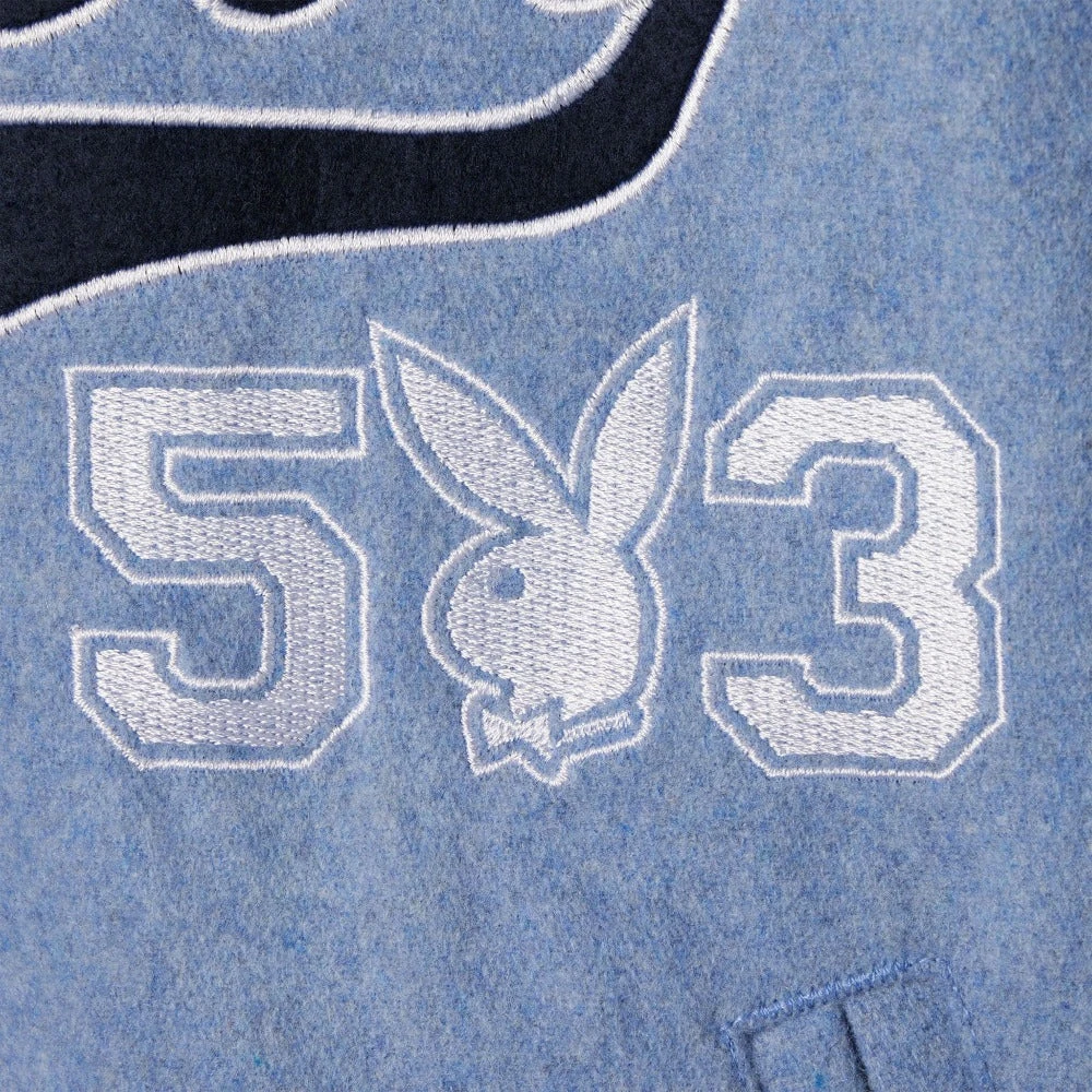 - Playboy Branding: Embroidery and patches that speak volumes about your taste in women’s letterman jackets.