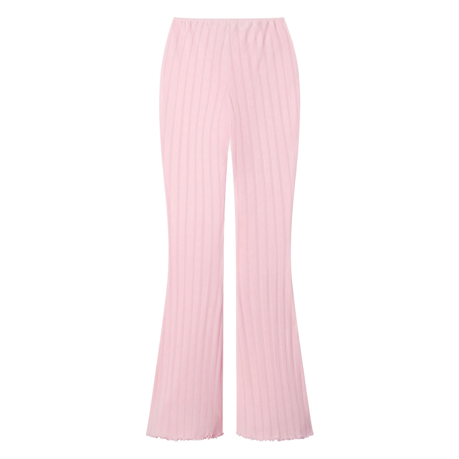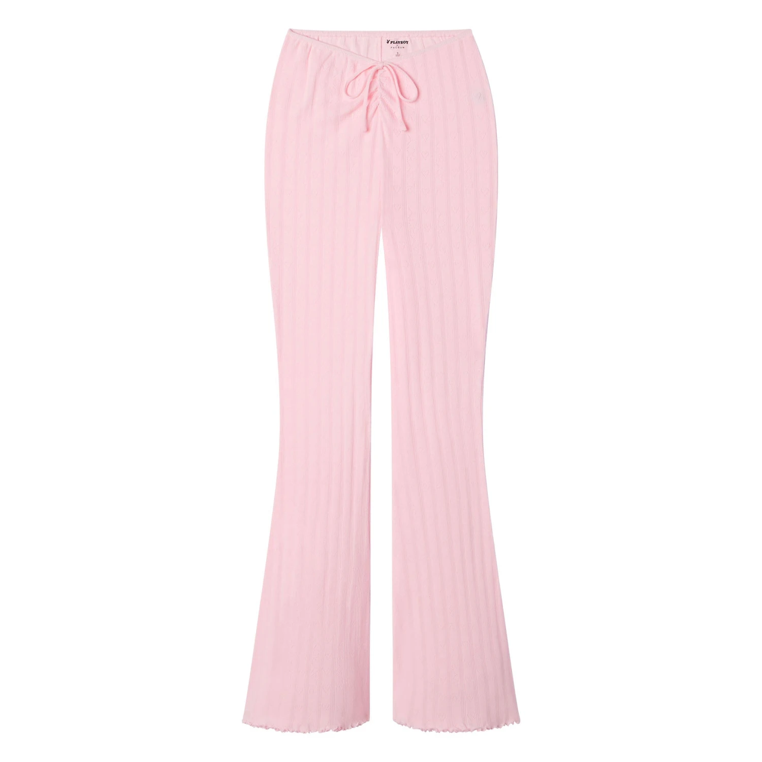 Introducing the Women’s Pointelle Logo Flare Pants by Playboy, a sartorial choice that effortlessly merges boldness with elegance. With a design that commands attention, these pants ensure your fashion statement is both daring and distinct.