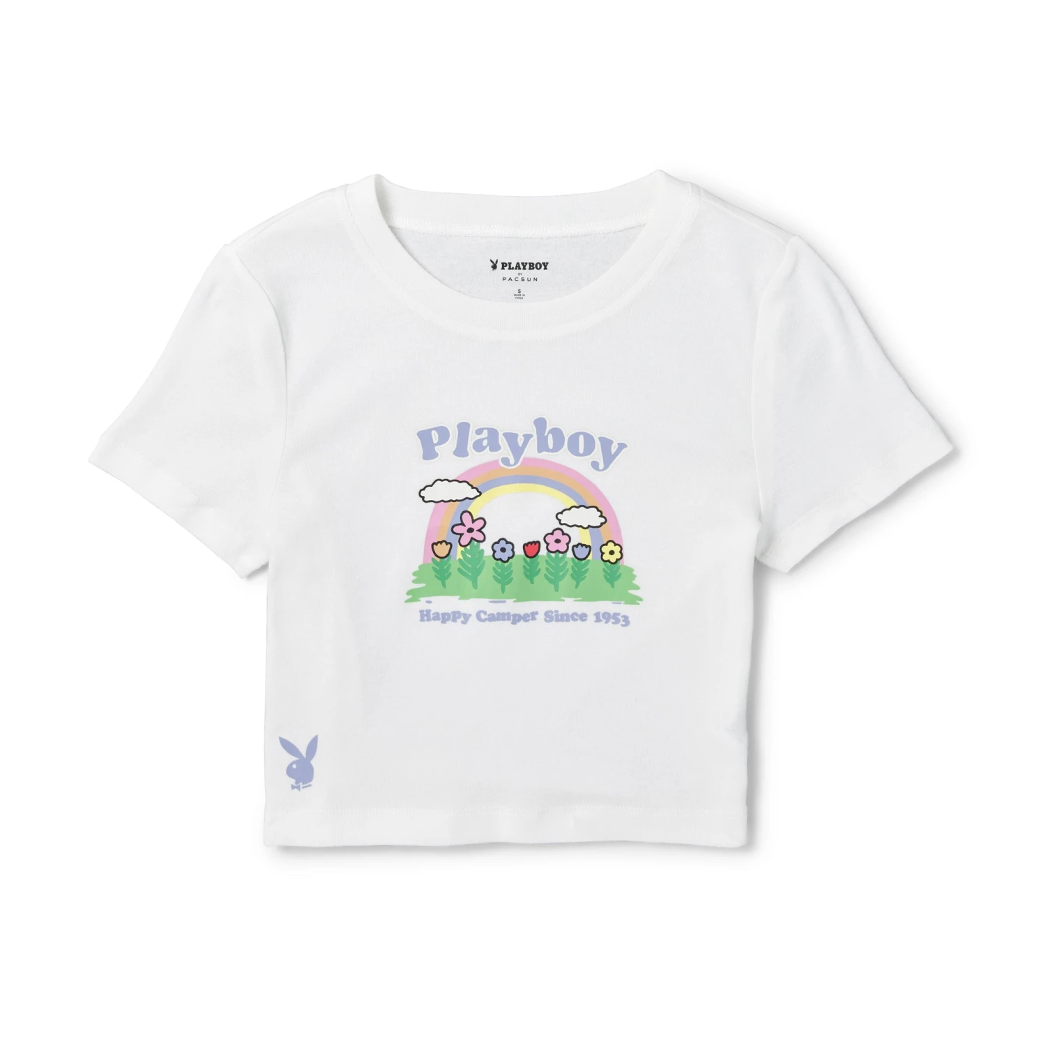This isn’t just a T-shirt; it’s a celebration of self-expression and extravagance. Embrace a look that’s as unique as you are with this captivating Rainbow Baby T-shirt from Playboy. Click to add a burst of color and style to your wardrobe now!