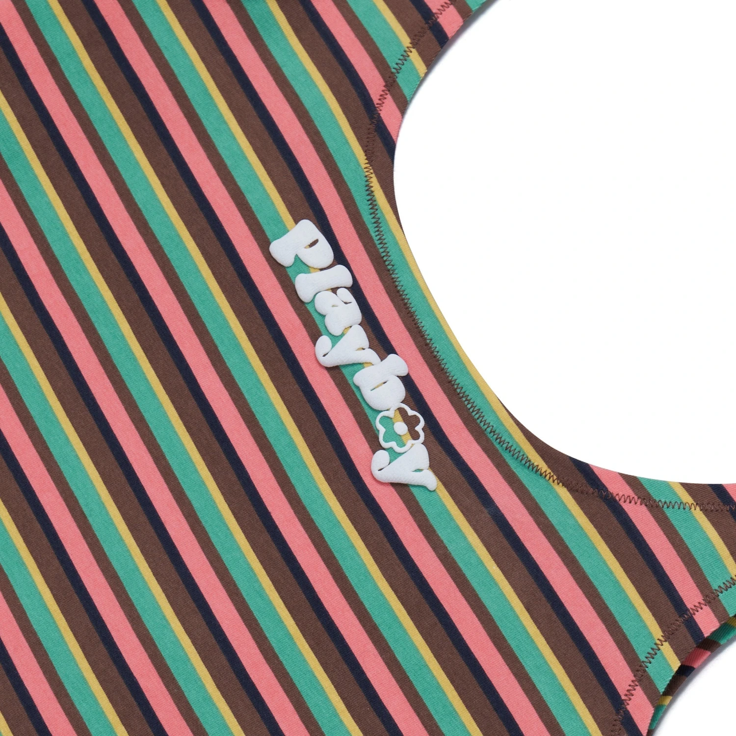 Turn heads with Playboy’s retro-inspired Women’s Scoop Tank Top. Ultra-cropped and daringly fitted, this tank top showcases a chic striped print topped with a Playboy graphic.