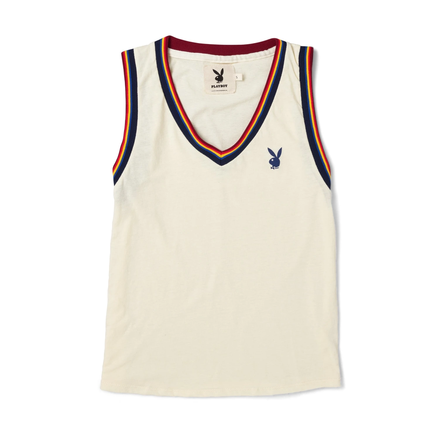 Introducing the Women’s Striped V-Neck Tank Top by Playboy, a part of our Outdoor Recreation line that’s designed for pure, unadulterated pleasure. From lakeside leisure to fireside chats, this is the top you’ll want to live in.