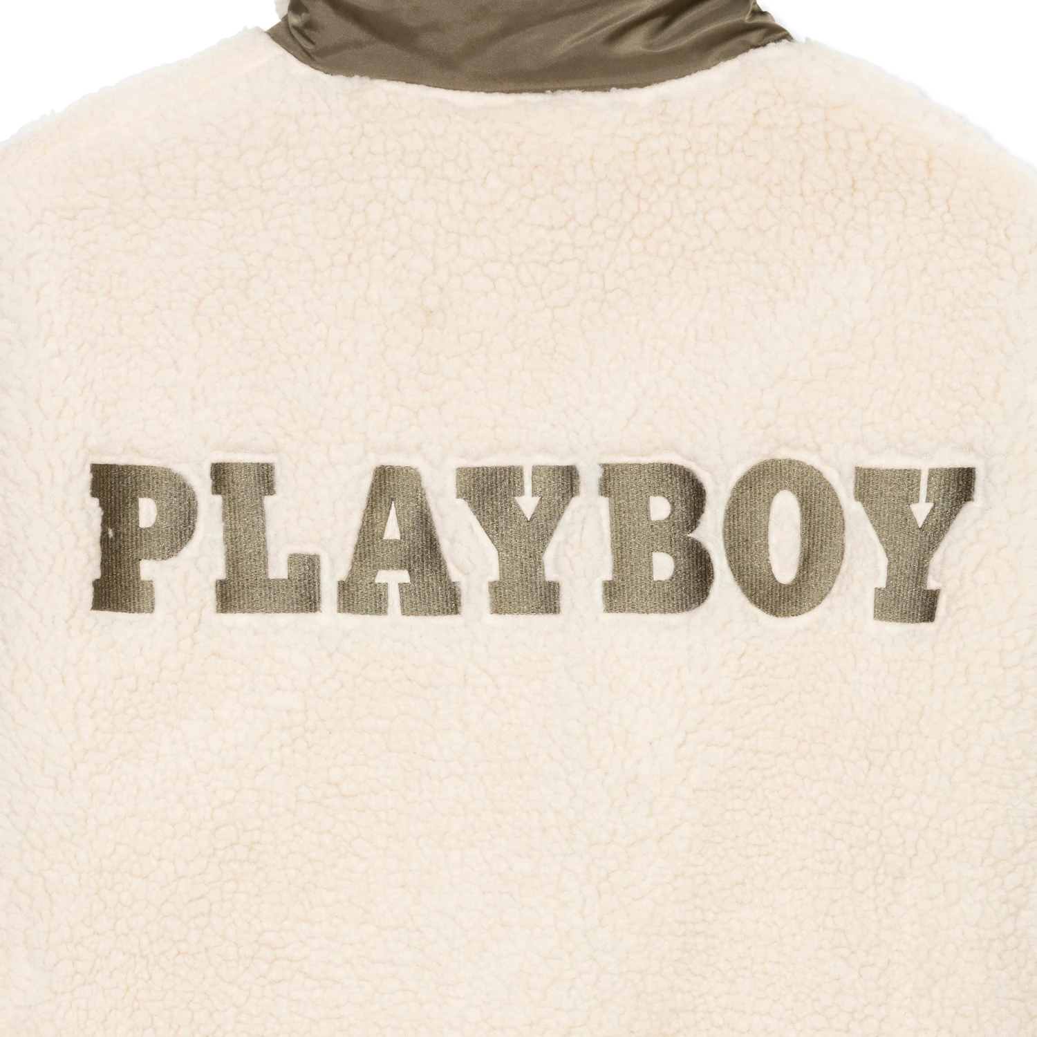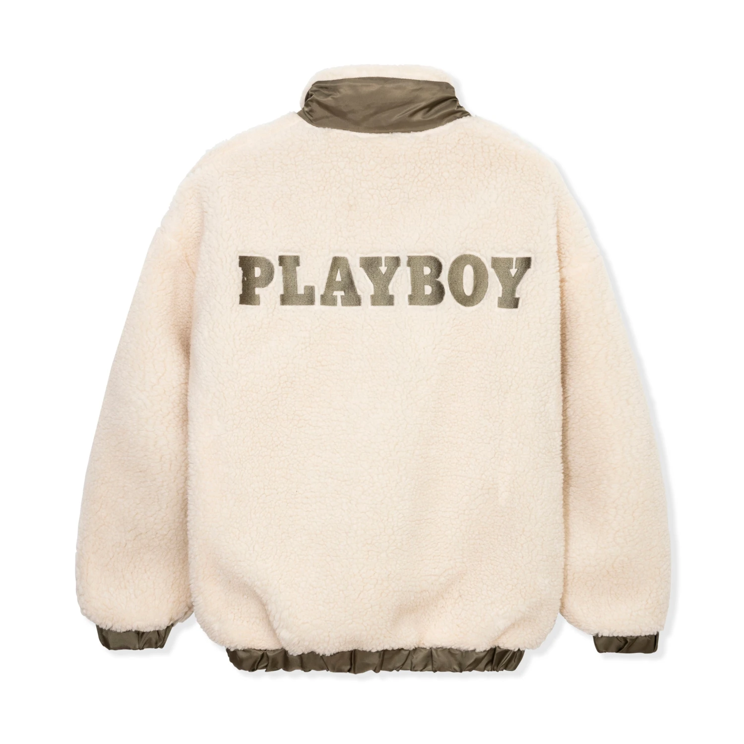 Elevate your winter wardrobe with this stylish Teddy Patch Jacket from Playboy. Click now to make this unique and cozy piece a part of your fashion collection.
